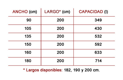 Importante capacidad de almacenamiento: Desde los 349 litros de capacidad de un Decobox® de 90x200 cm. a los 714 litros del modelo de 180x200 cm.
